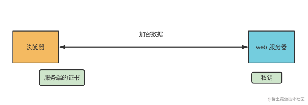 服务端会下发被 CA 认证过的证书,里面包含了公钥,而服务器自己保留私钥,通过这种机制完成对称密钥的传输和身份的认证,之后加密传输数据。