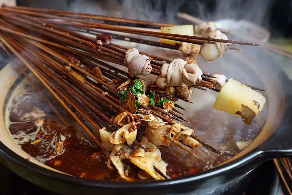 作为传说中串串、冒菜的前身,麻辣烫早年也只是路边卖的烫菜带走吃,后来才演变成了现在的热锅串串样子。