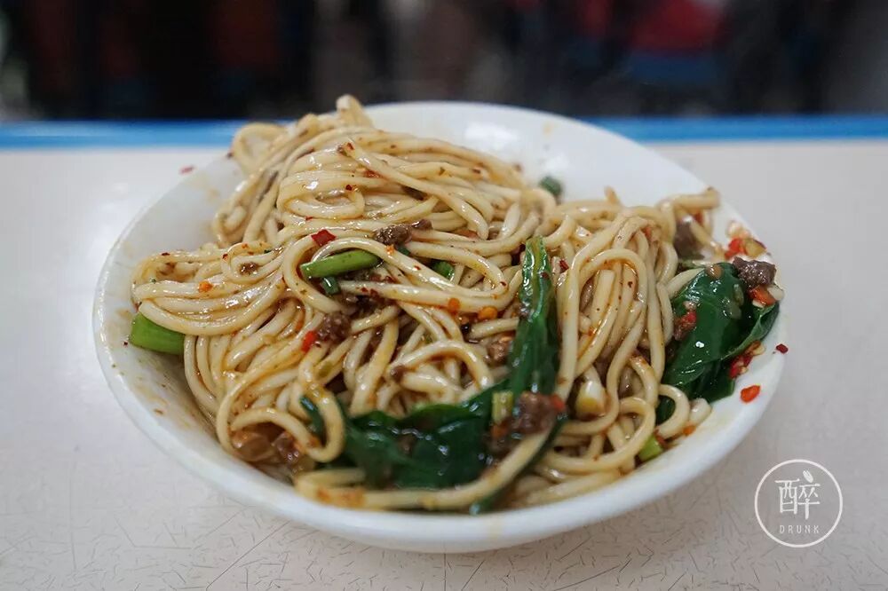 两种鲜椒剁碎了跟牛肉臊子huo在一起,每根面条都巴满了料,啊好好吃!