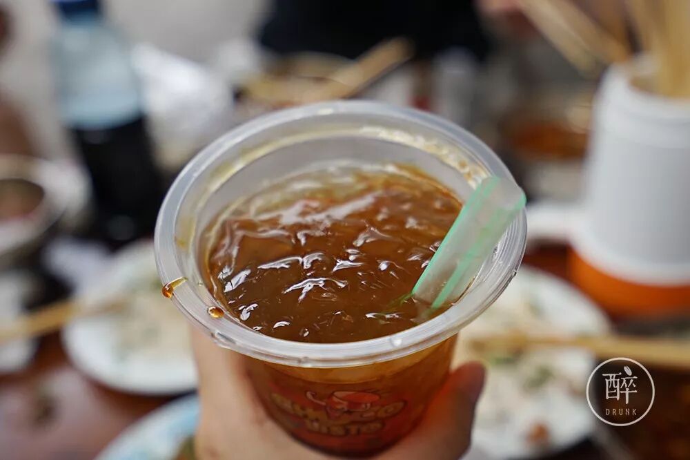 特别简朴的塑料杯杯儿,红糖的味道多正的,用吸管呲溜呲溜的喝~