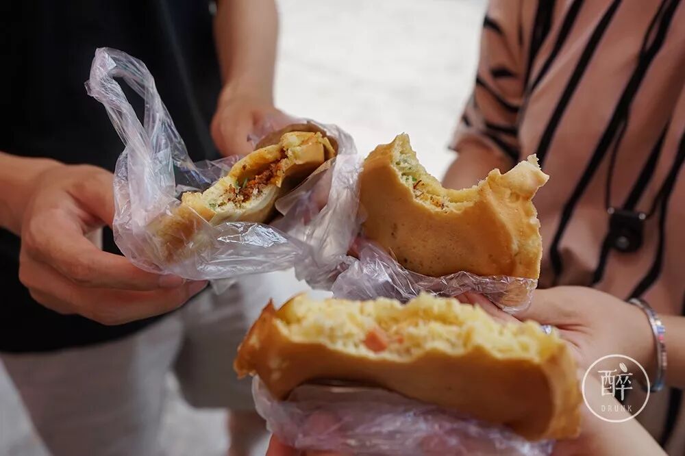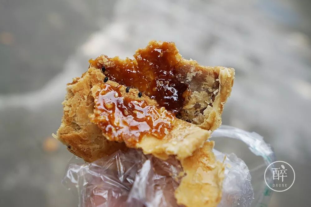 拿到手上还是烫的,等它稍微冷一点之后再吃,一口下去,外层油酥掉渣,里面的红糖浓香黏烫。