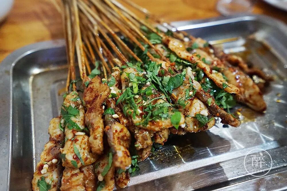 一家是网红的六嬢烤鱼片,鱼片是真的好吃,有个小提醒,我们的120串上了85串剩下了催了五次才上上来。