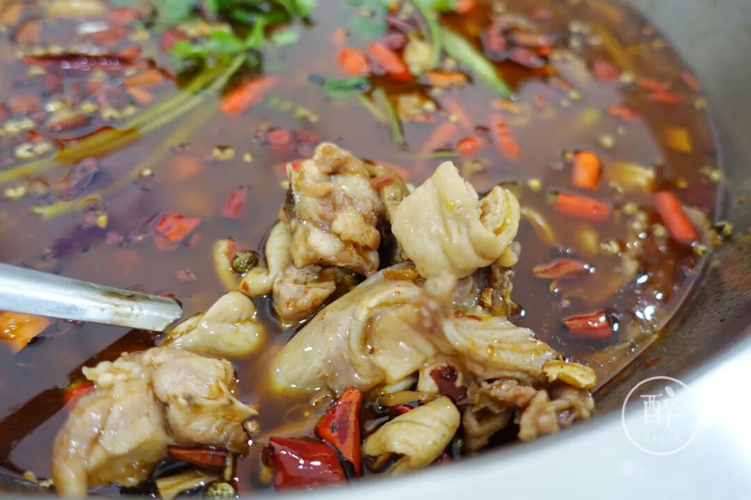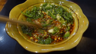 这盘仔细观察了,面上浮了一层金蒜,加上干海椒、香菜、葱葱,难怪那么香!