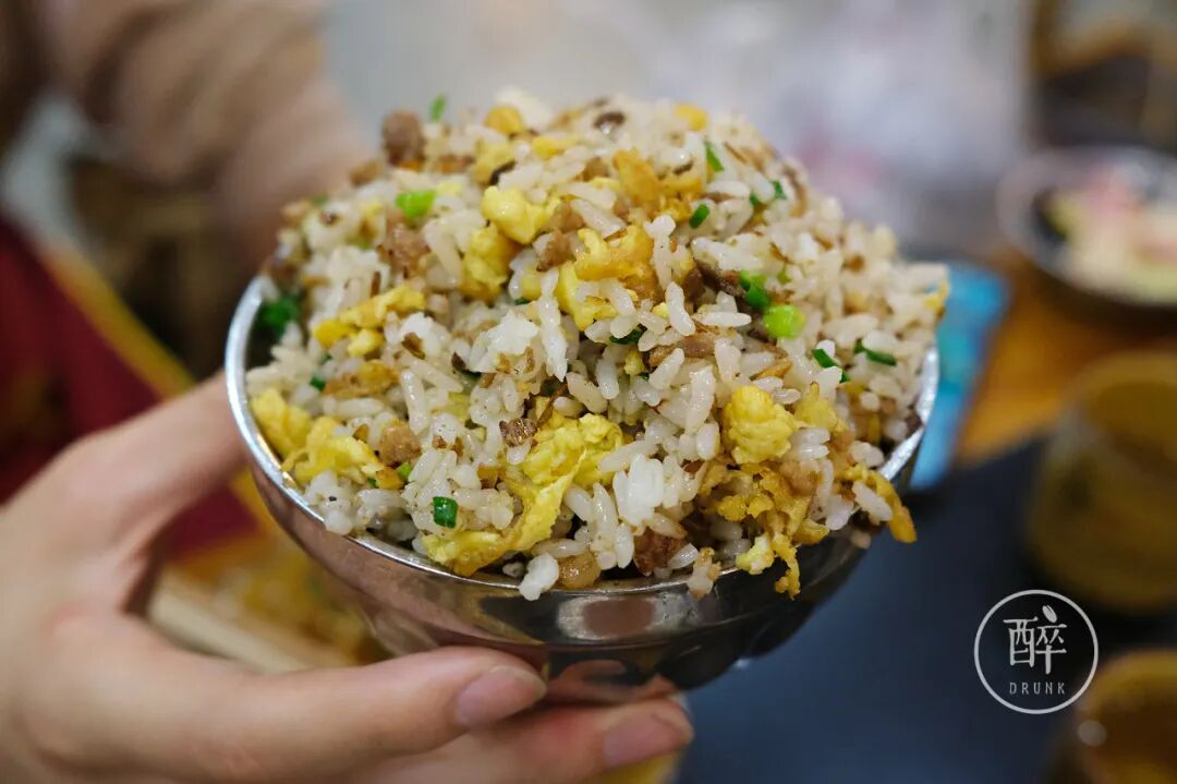 但最最最绝的,还是这碗压实了的渣渣肉蛋炒饭,可以封神!