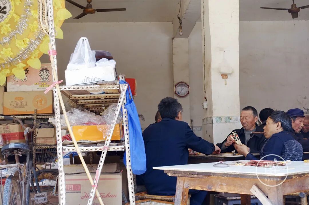 大爷们在花圈店里打牌,桥头的大树,绿得发烫~