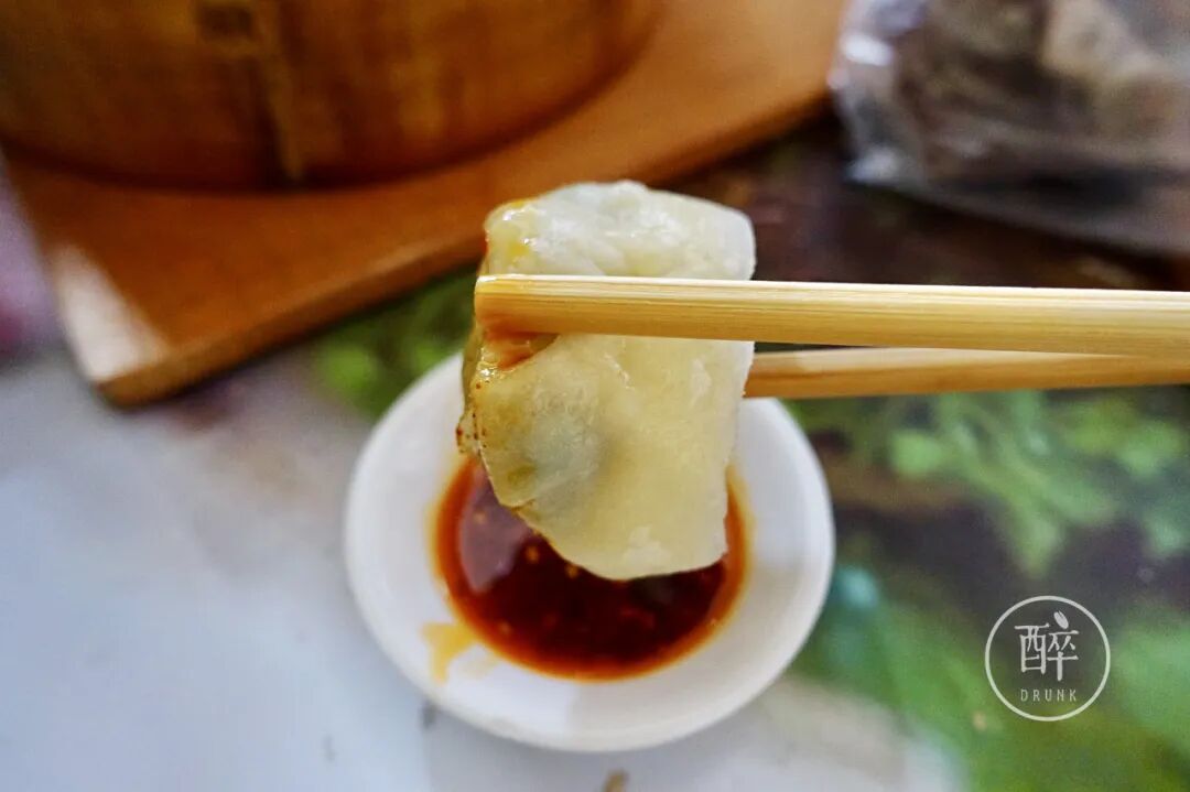饺子是韭菜馅儿的,有点鲜,蘸料没什么味道,只徒增一点油气。