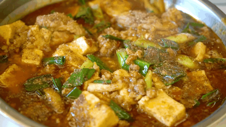 正宗的麻婆豆腐(适用于豆腐脑花或者豆腐脊髓)讲究的是麻辣鲜香烫酥,6味合一。