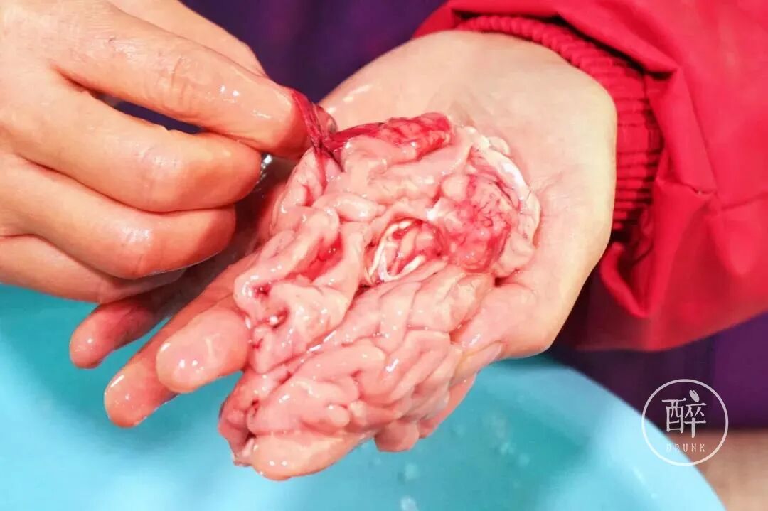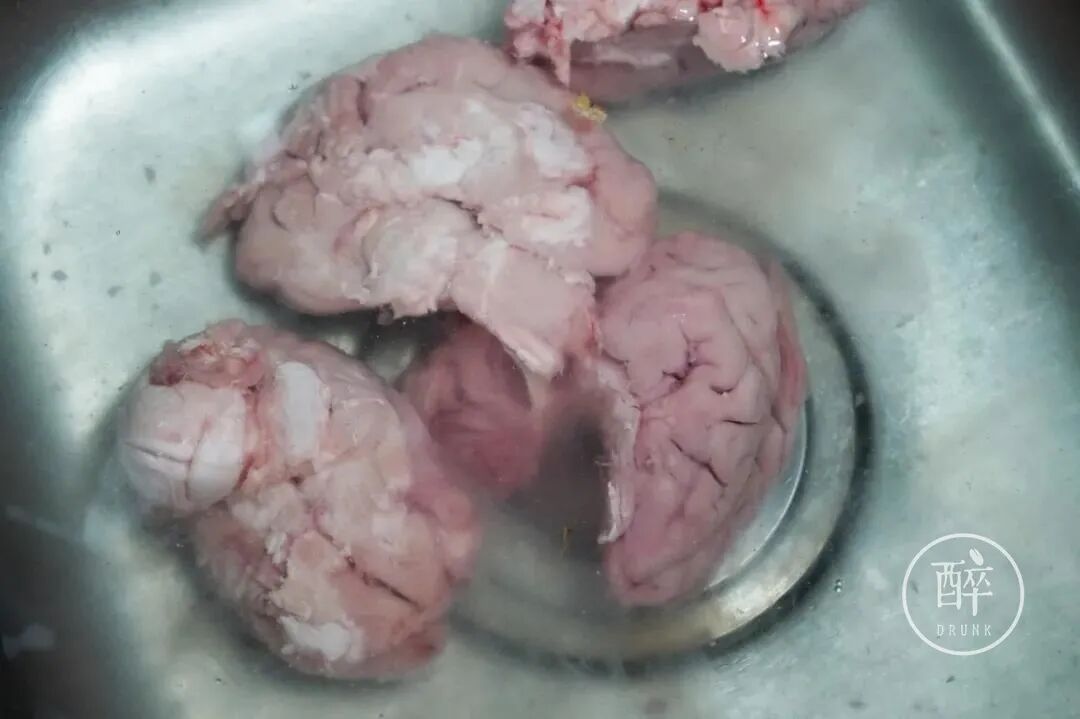 处理好的脑花,拿回家用清水过一下,动作要轻柔,不然就是一手...