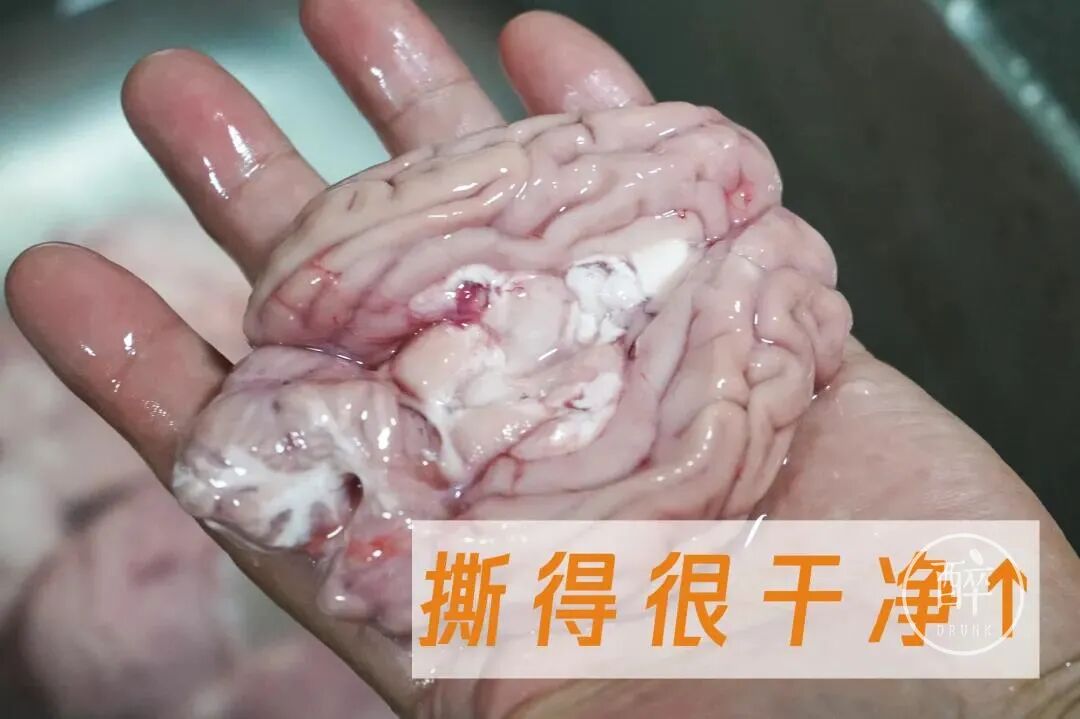 买的时候,一定请老板帮忙扯下脑花上面的筋膜。