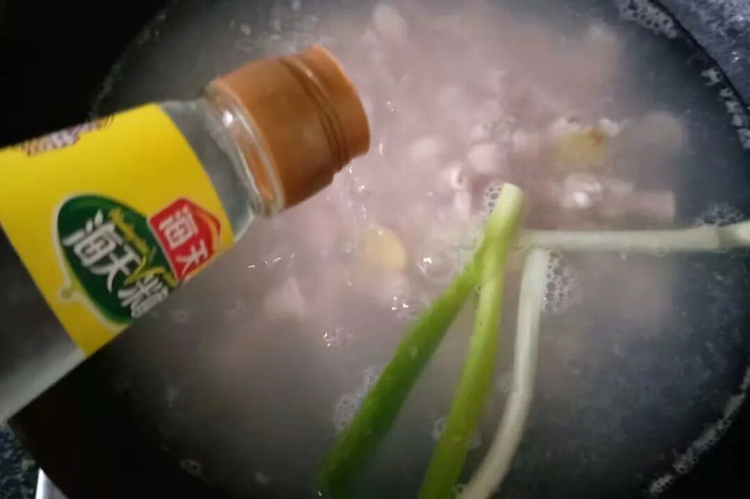 炒香之后的肉沫,加2碗半(饭碗那么大)的水至烧开。