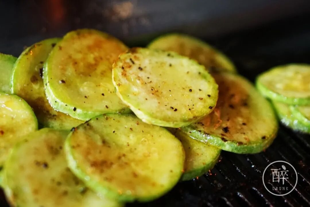 一大盆清油上面微微调了点料,三月瓜两面烤一下,直接爆汁水。