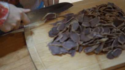 我真想给你们听听这个鸭胗在刀下的声音,一听就知道——