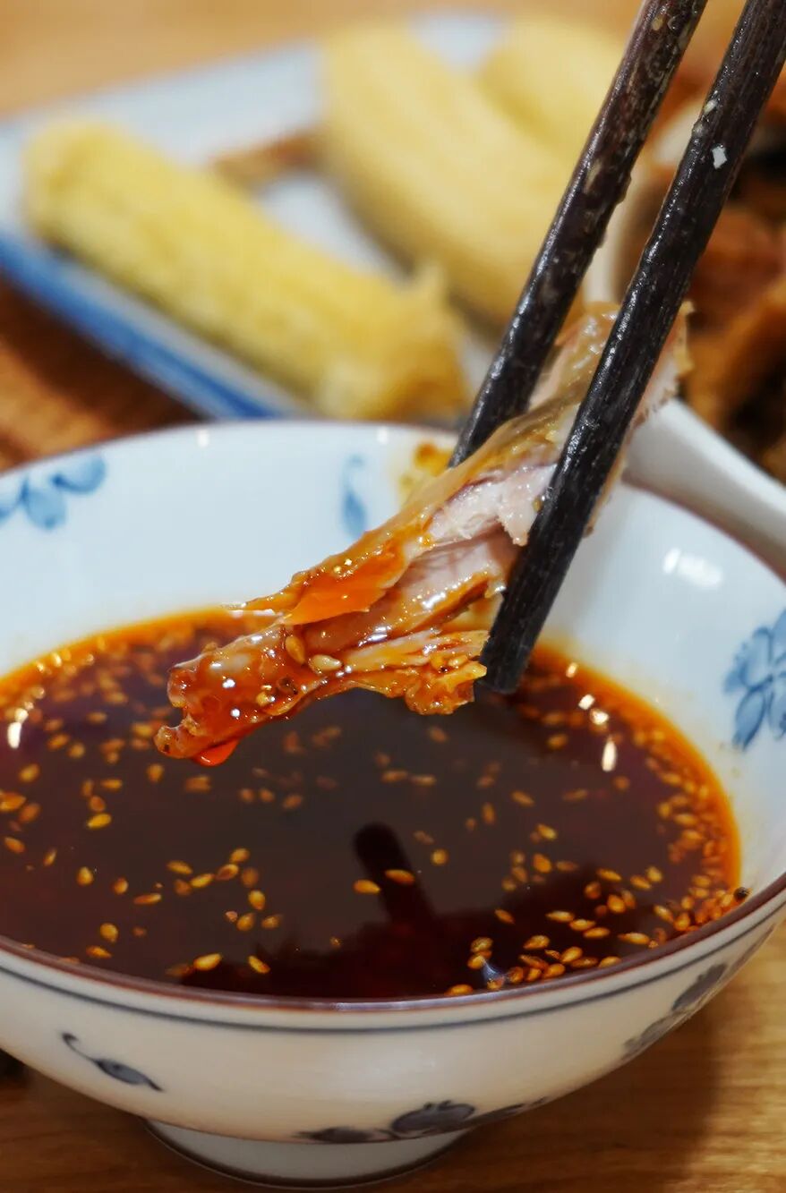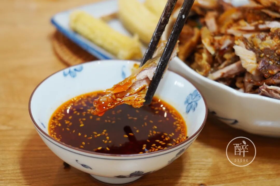 不像北京烤鸭那么讲究现片现吃、也没有成都烤鸭要加麻辣要「冒」。