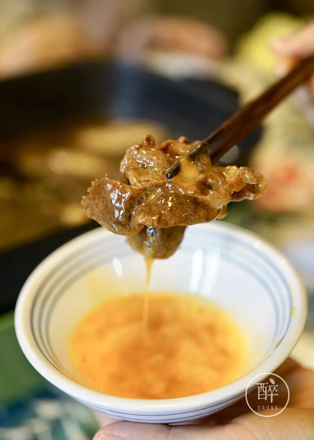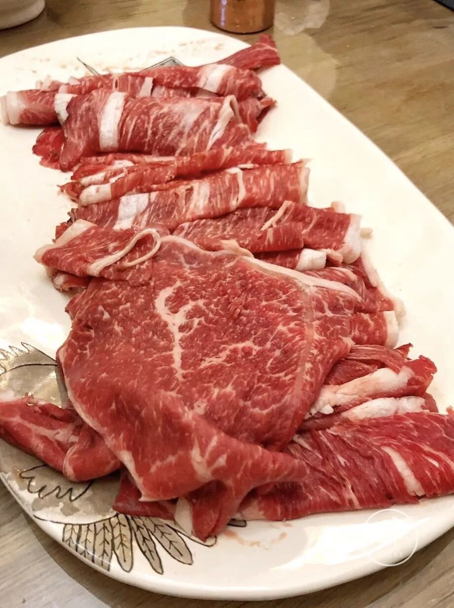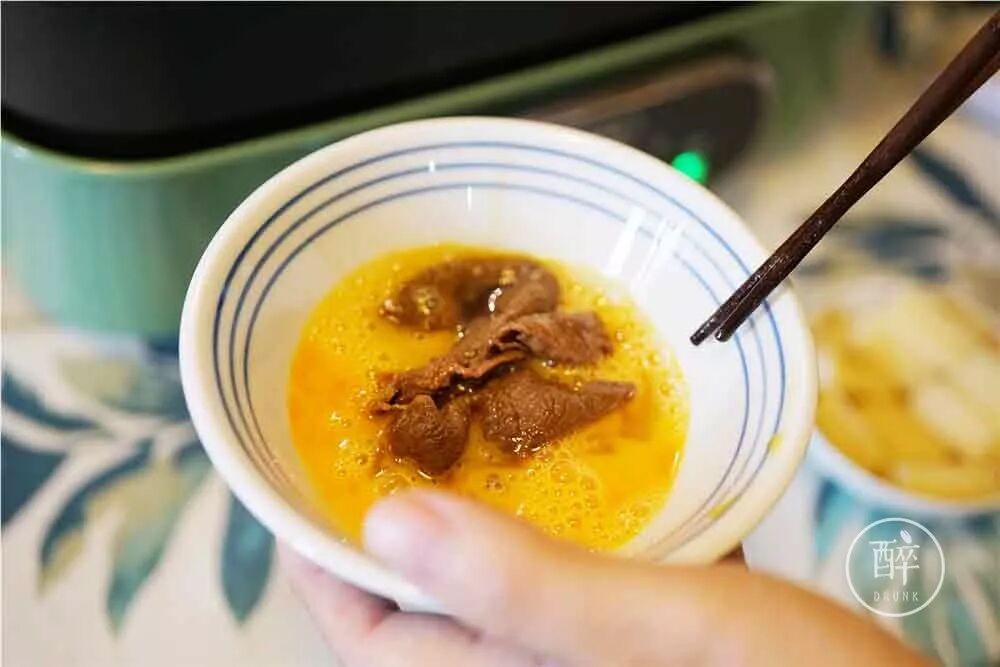 ②锅底咸鲜回甜,涮牛肉,蘸蛋液