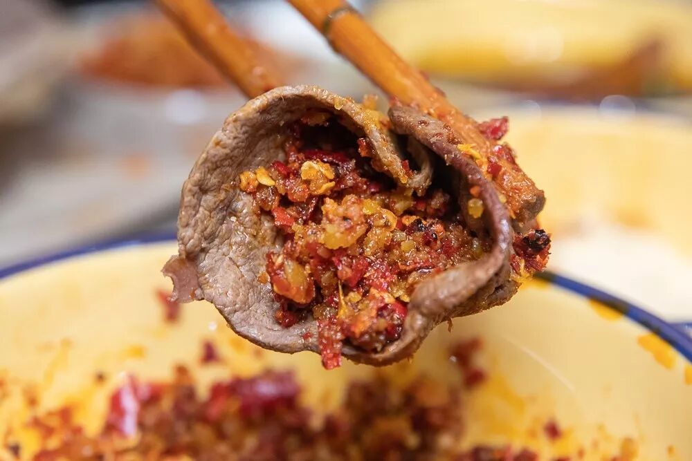 双味牛肉是麻辣牛肉+香菜牛肉,照顾了吃辣和不吃辣的两大人群。