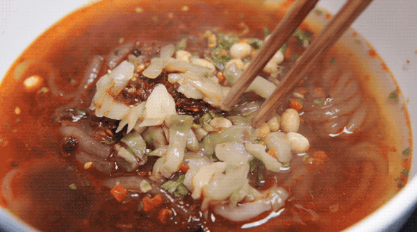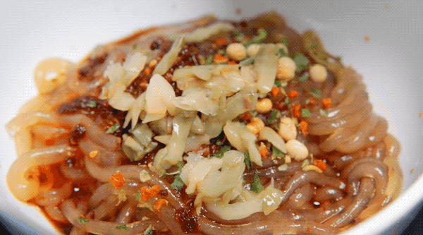 酸味和辣味都很出挑,醋酸味巴到了每一根粉条上头,辣意在后头,搭口就停不下来,一口气嗦完一碗。