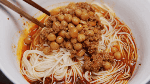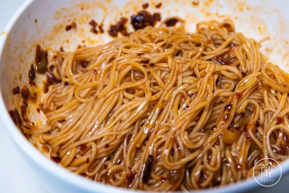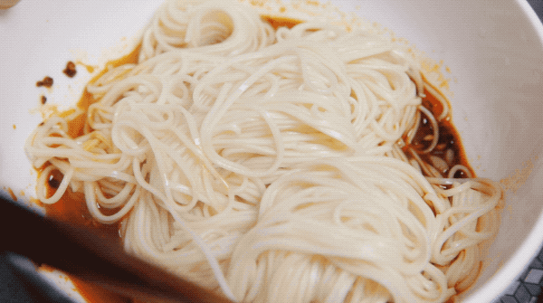 带点辣ferfer的味道很好,跟水叶子面不一样,鸡蛋面不会太劲道但是更吸味吸油,可以把调料里面的香味都裹到面里面去。