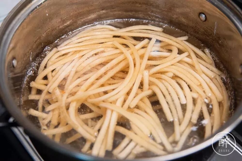 扯开我们就都在说,这种粉,一看就好吃。(煮之前要把黏到一起的粉扯开成一根根的)