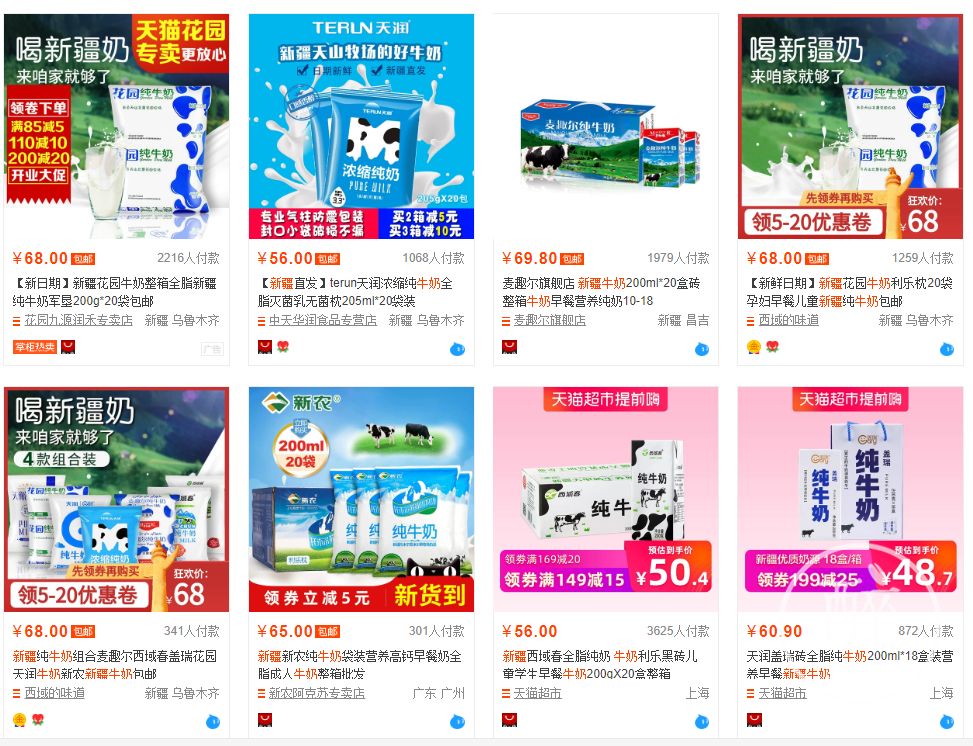 在搜索新疆牛奶的时候,一个叫「新农」的牌子居然占据了销量的前列。