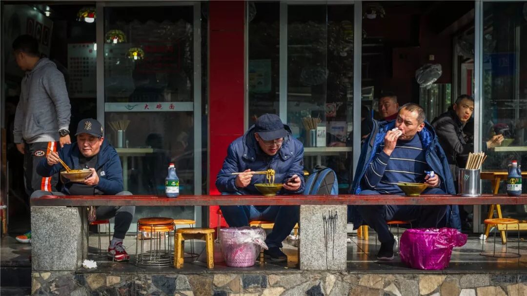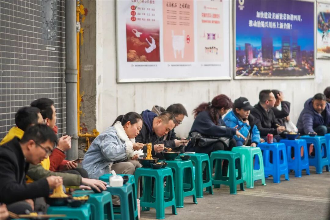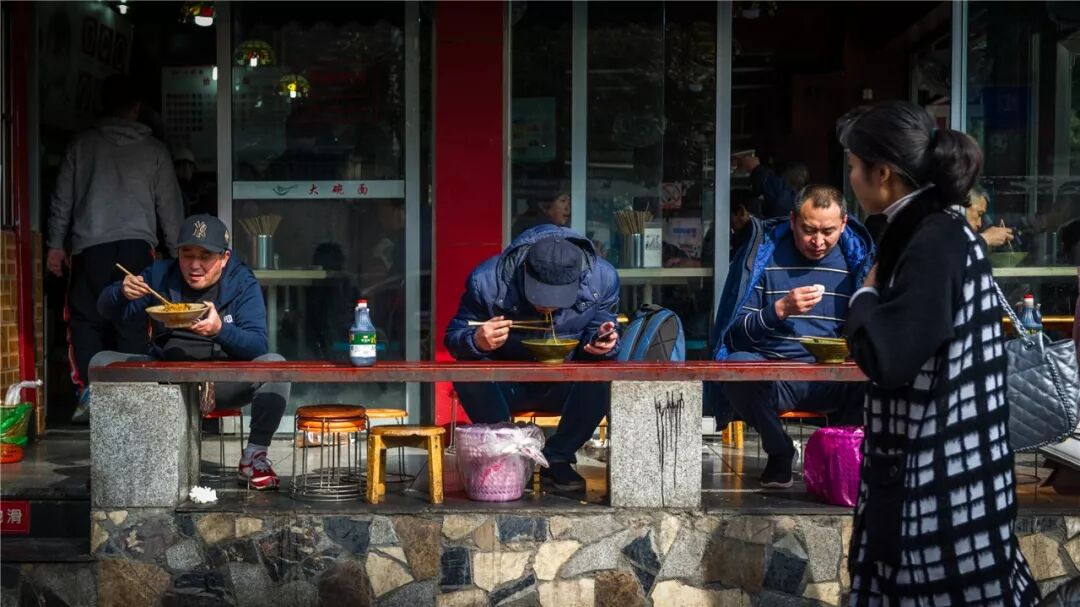吃面的姿势,可以是站起坐到甚至是趴到店门口