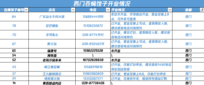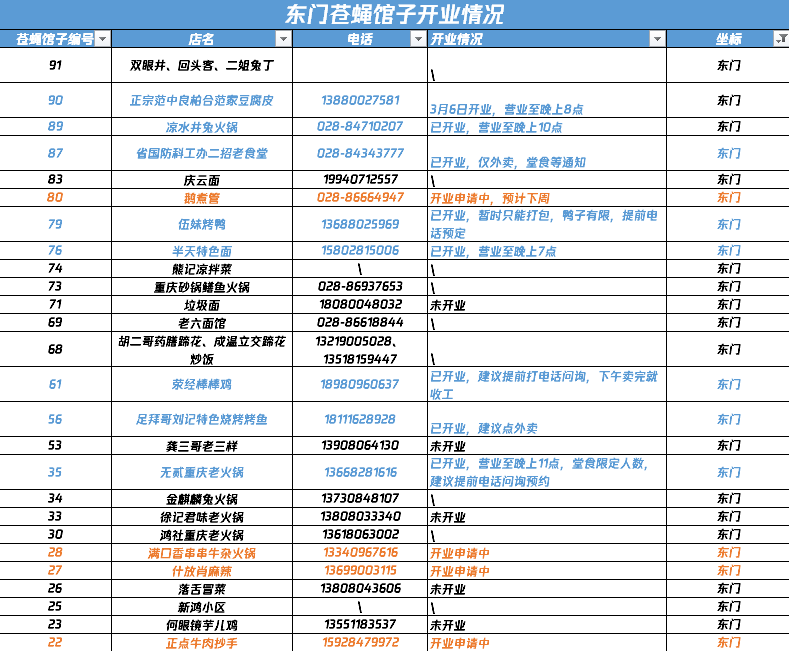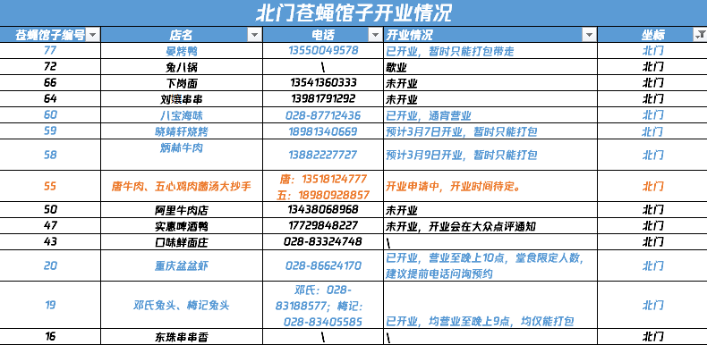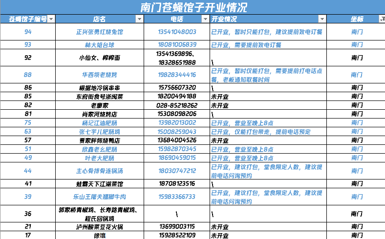 所以,在过去2天,我给饭团曾写过的苍蝇馆子商家们,挨家挨户打了将近100通电话,问询开业状况。