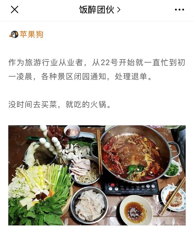 我最早感知到旅游业,是因为过年回家从上海经过,一路的同学在携程工作。之前征集年夜饭照片的时候,也有网友忙得年夜饭都只能从简: