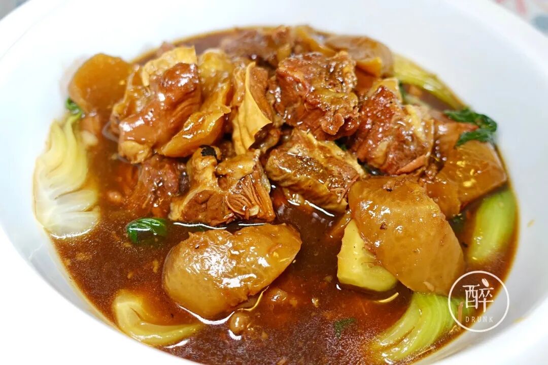 牛腩的位置也是看得出的好,红烧味型,萝卜炖得很软烂了。