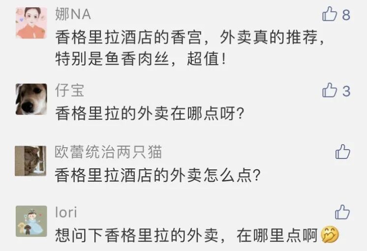 文章发了以后,倒是好多人都在评论里问:「香格里拉外卖在哪里点?」