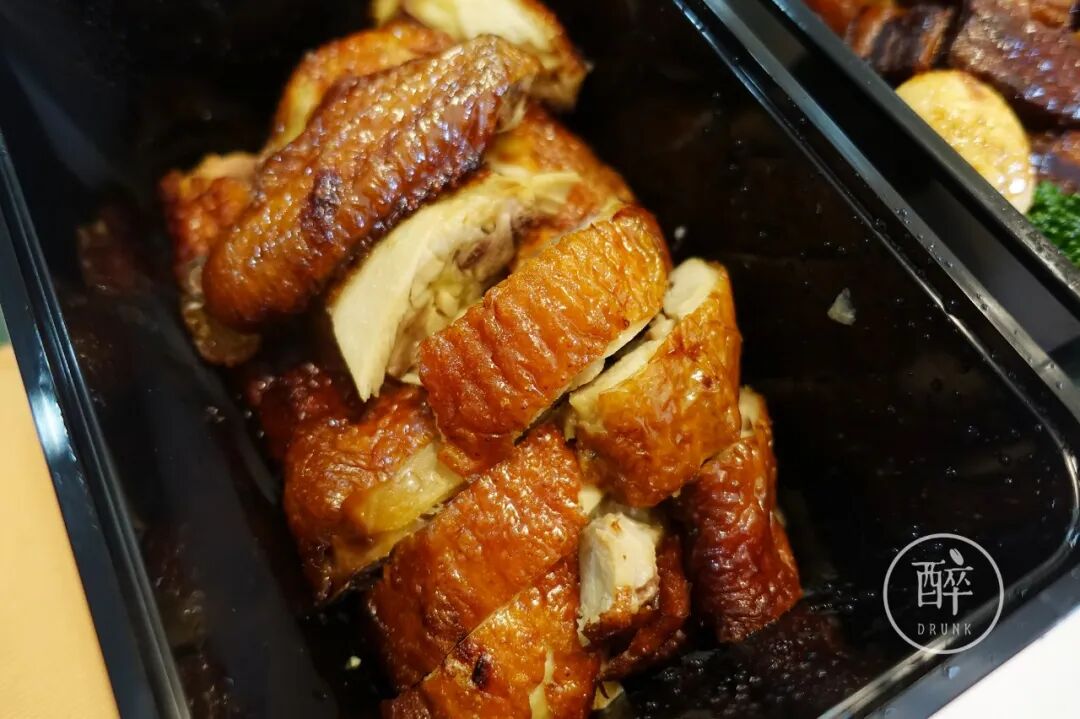 比如香宫吊烧鸡,58一份,半只。皮子很香,肉很紧实,稍微有一点干。