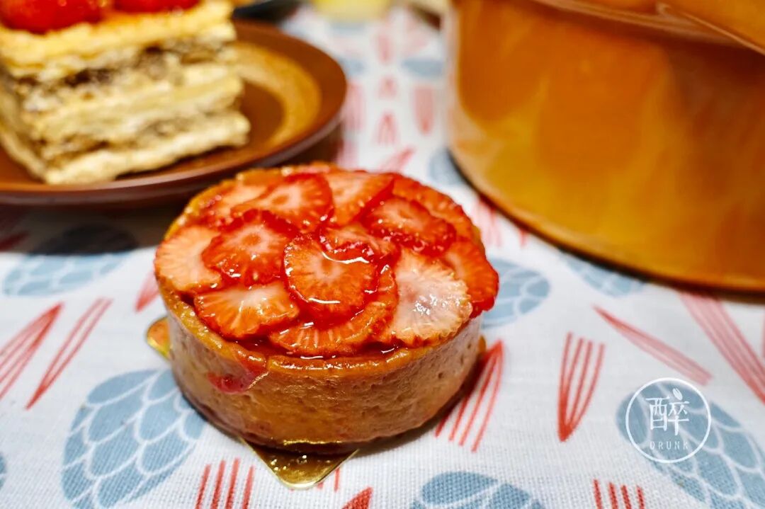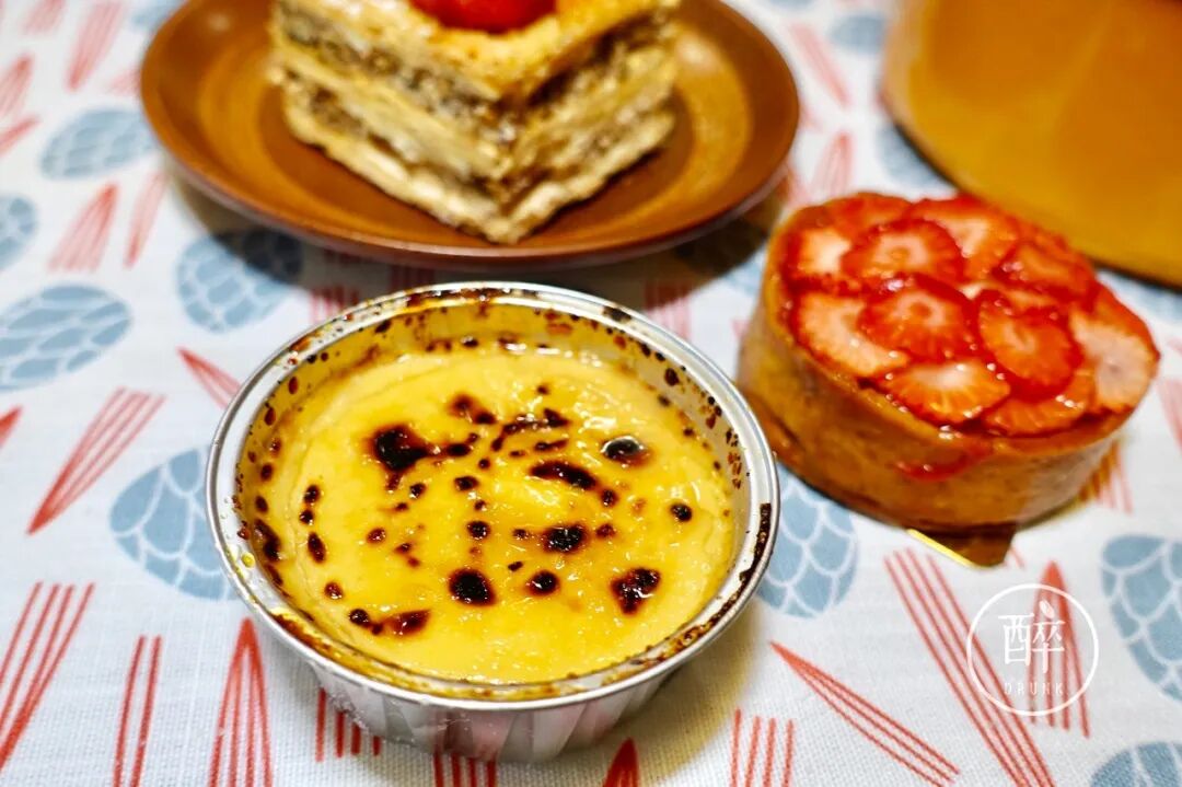 草莓塔略偏酸,焦糖布丁又有点太甜了,不是特别让我满意。