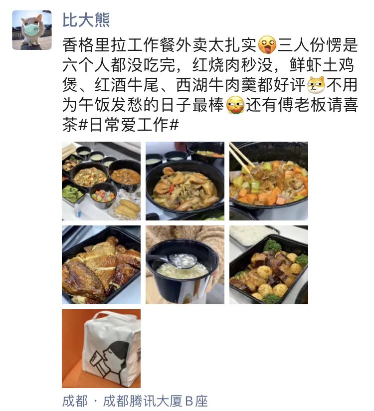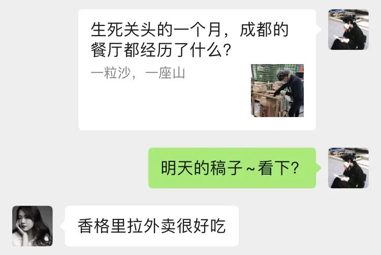 给隔壁成都生活@雪妮 看稿子的时候,她的第一句回复是:「香格里拉外卖很好吃」。