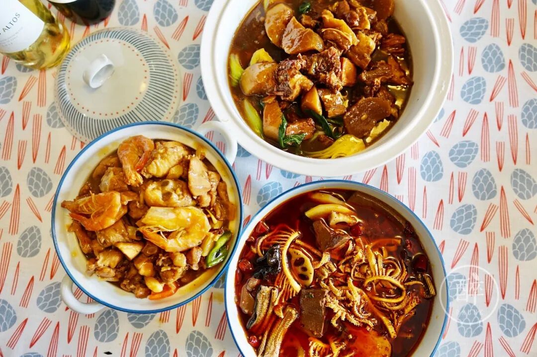 官方图长这样,几款主菜都是餐厅之前主打的菜色,比如香宫红烧肉、鲜虾烧土鸡。