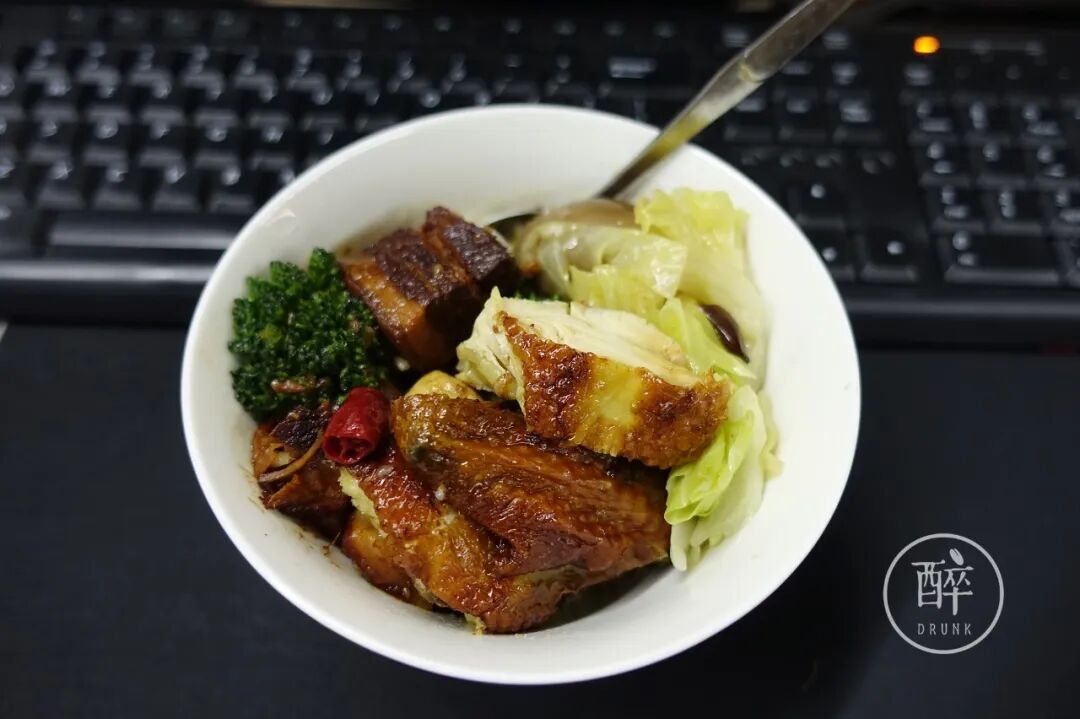 回热以后被红烧肉的油和莲白的水汽沁了下,吃起来很有烤鸡的感觉~