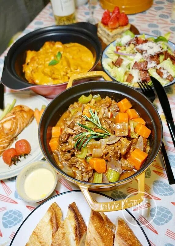 本来配的法棍是吃红酒牛尾的,但是我觉得蘸黄油鸡的料更巴适~