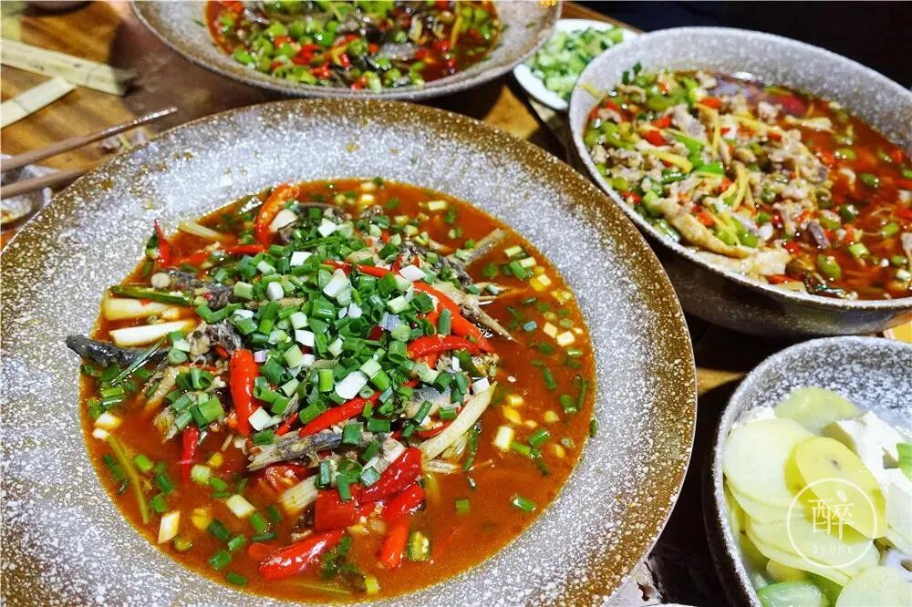 滴点儿大个堂子只能坐6张桌子,每桌都是几大盆闻到就过瘾的鲜辣味道。