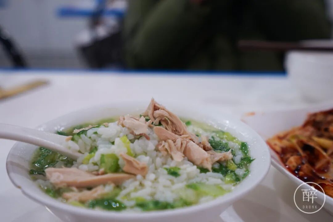 鸡汤饭是真.鸡汤煮的饭,入味透彻、还铺了一层鸡丝。
