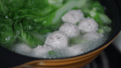 直接加清水炖煮几分钟,再放入青菜烫熟,出锅的时候撒一点点白胡椒。