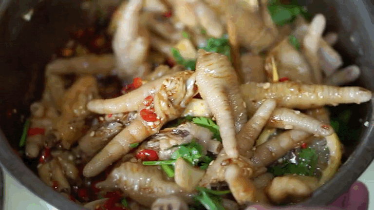 这儿不,缠了她两周,终于蹭来了家庭自制超干净版酸辣鸡脚。