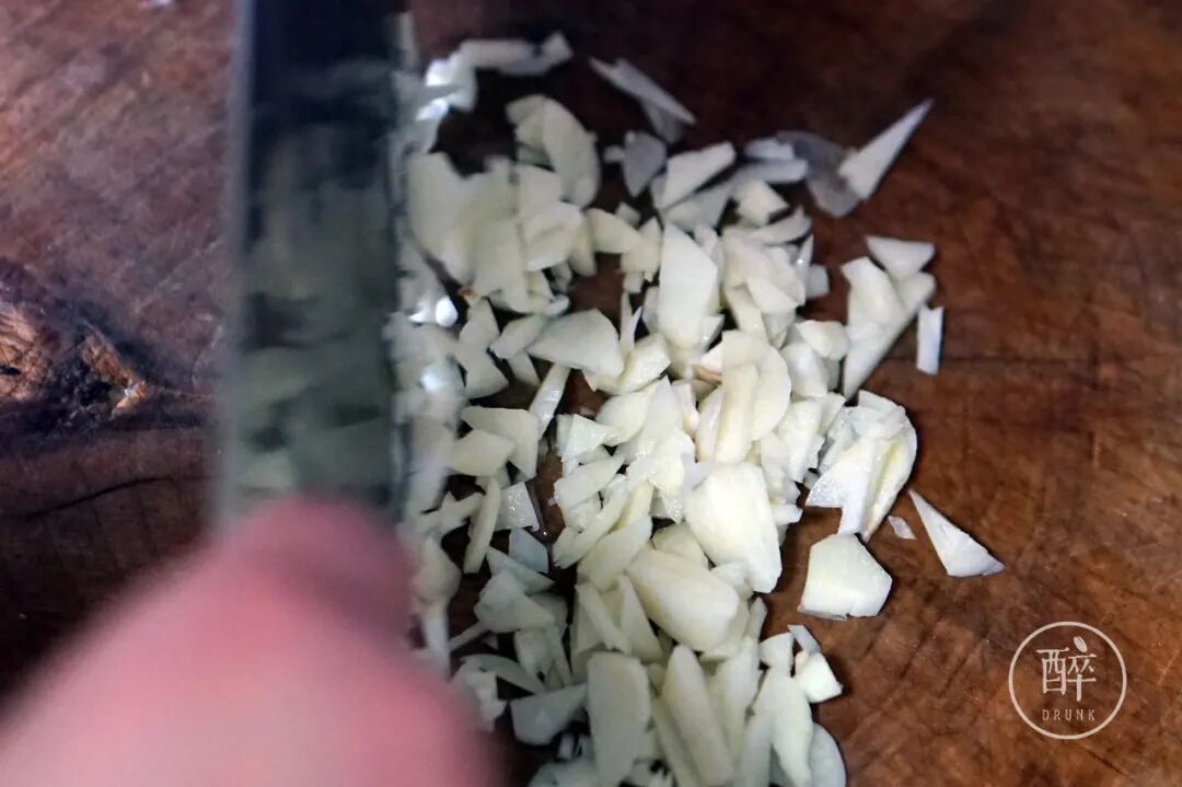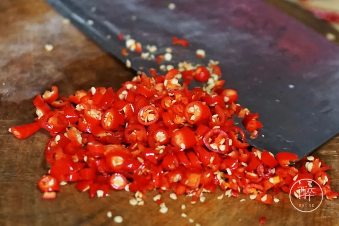大蒜和小米辣比例用的是一比一,大蒜切粒、小米辣切段,做出来更加爽辣十足。