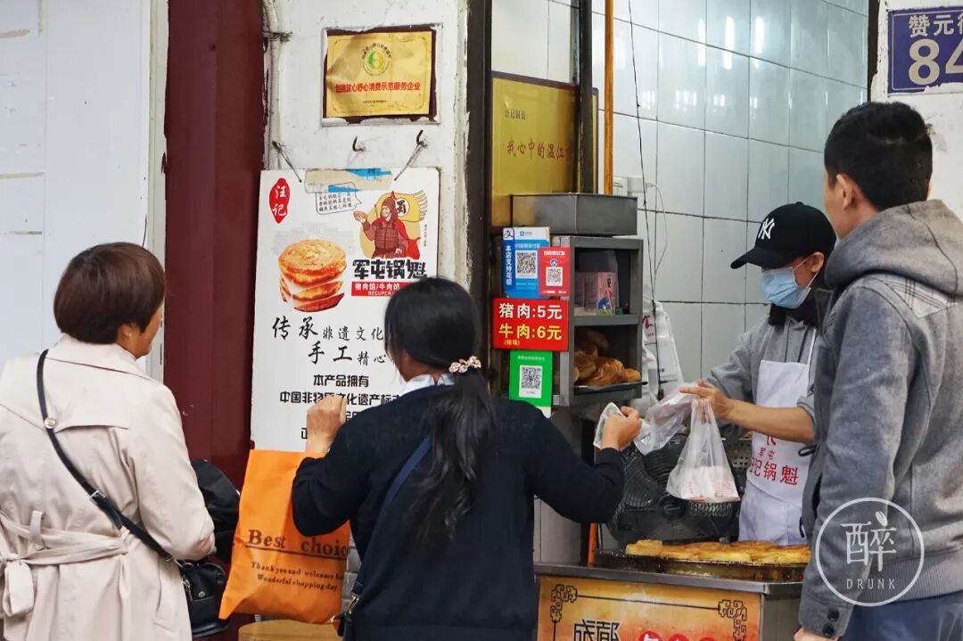 大概只有1米宽的铺子,里面好几个揉锅盔的师傅。老辈子已经退休,现在是儿女在做。