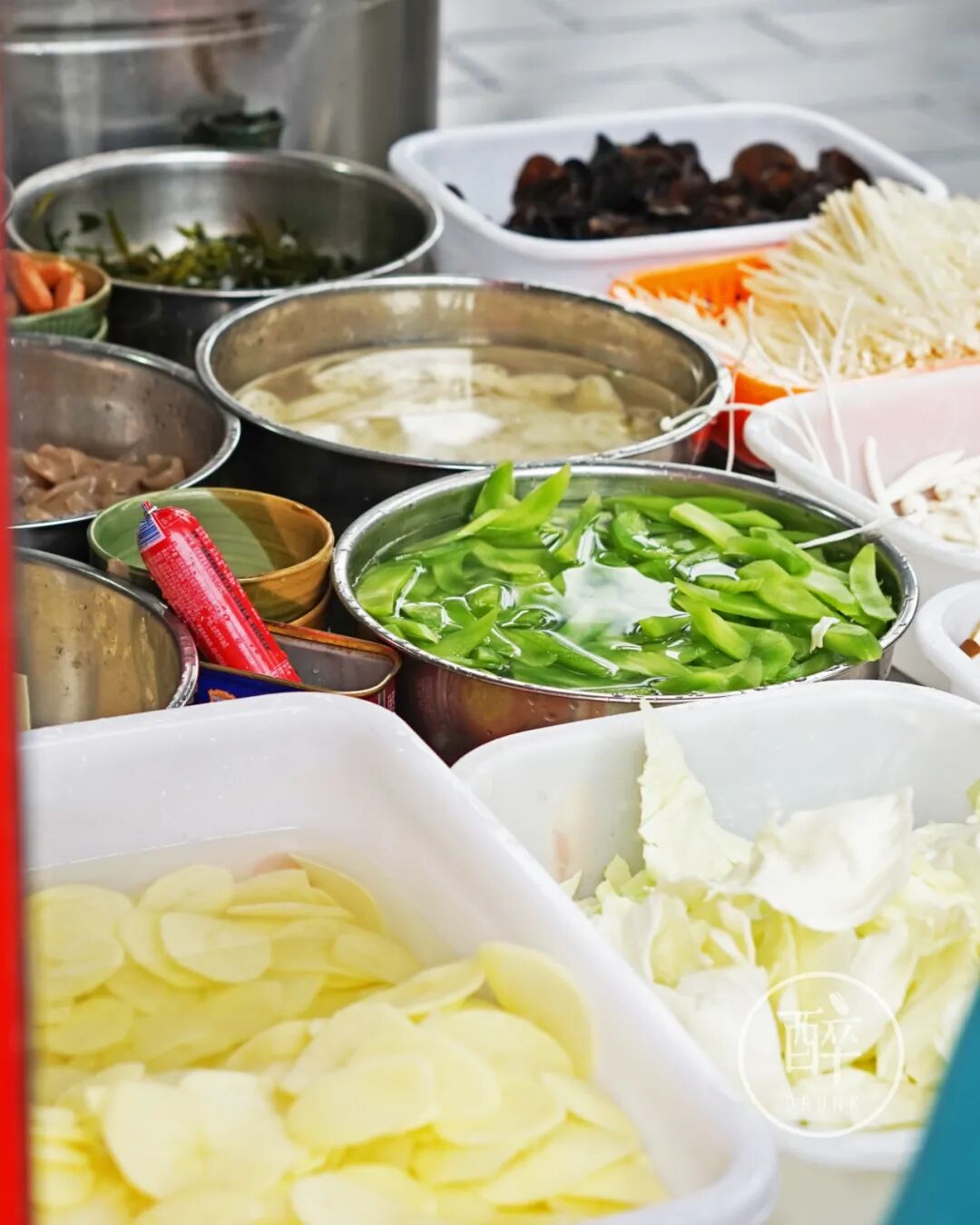 烫米线的地方弄得干干净净的,旁边的各种臊子看起也相当诱人。