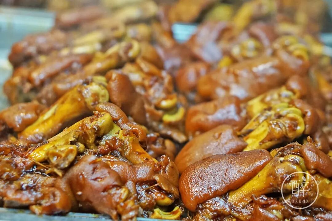 我个人还比较喜欢猪舌头,一整根卤的,切出来的话卤味不会有猪蹄那么重。