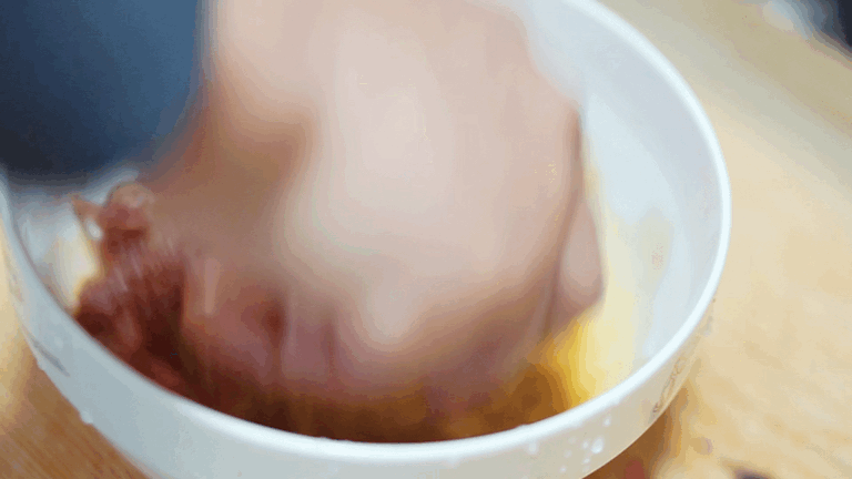 判断豆粉够不够,rua完之后看肉的切面有没得露白,有就说明豆粉不够,加一点。