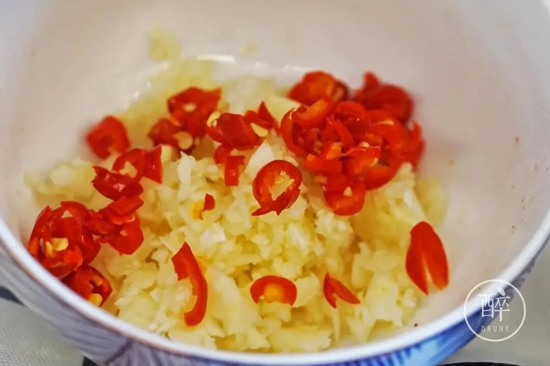 一个是四川人的万能蘸水:小米辣+蒜,加一点原汤或者香油都好吃。