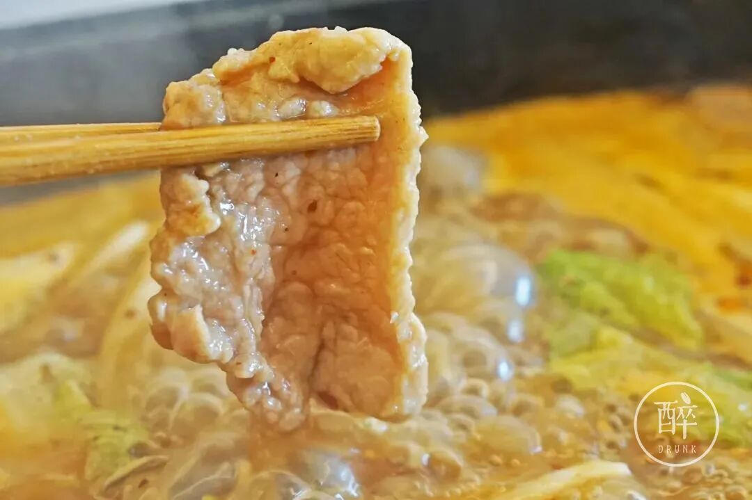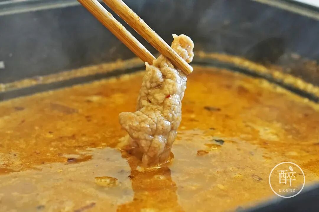 没得筋,烫一哈就熟,没有经过任何码料和腌制的肉更能吃出豆米火锅的香味。