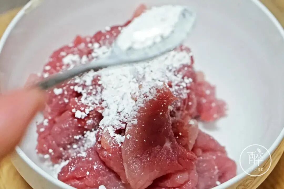 回家之后加很多很多很多豆粉(量大概每一片肉rua开都巴满了豆粉),少许生抽、胡椒粉、盐。