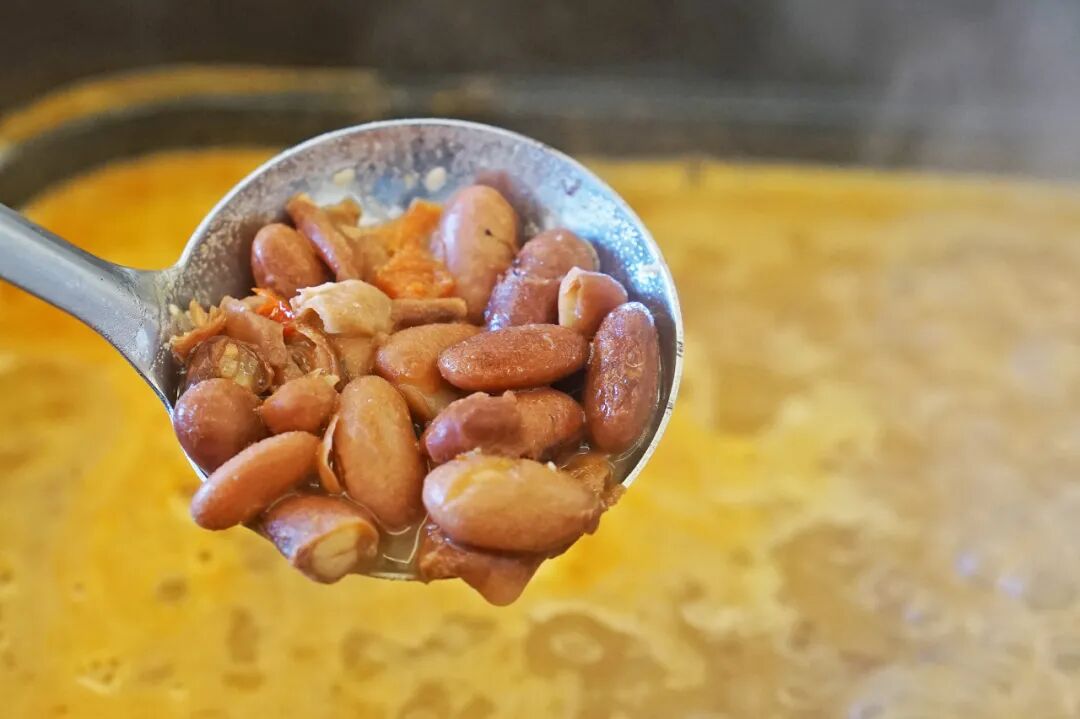 也是一吃难忘,特别是铺满了豆子的豆米火锅,煮肉煮菜简直不摆了。