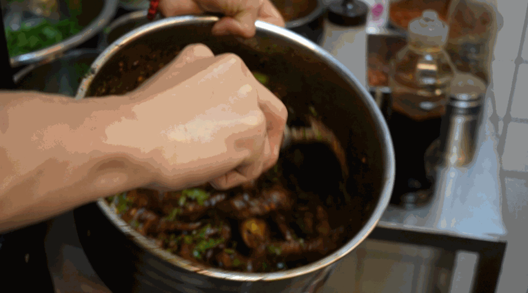它也是现场复热,又裹了花生和各种料拌起的。