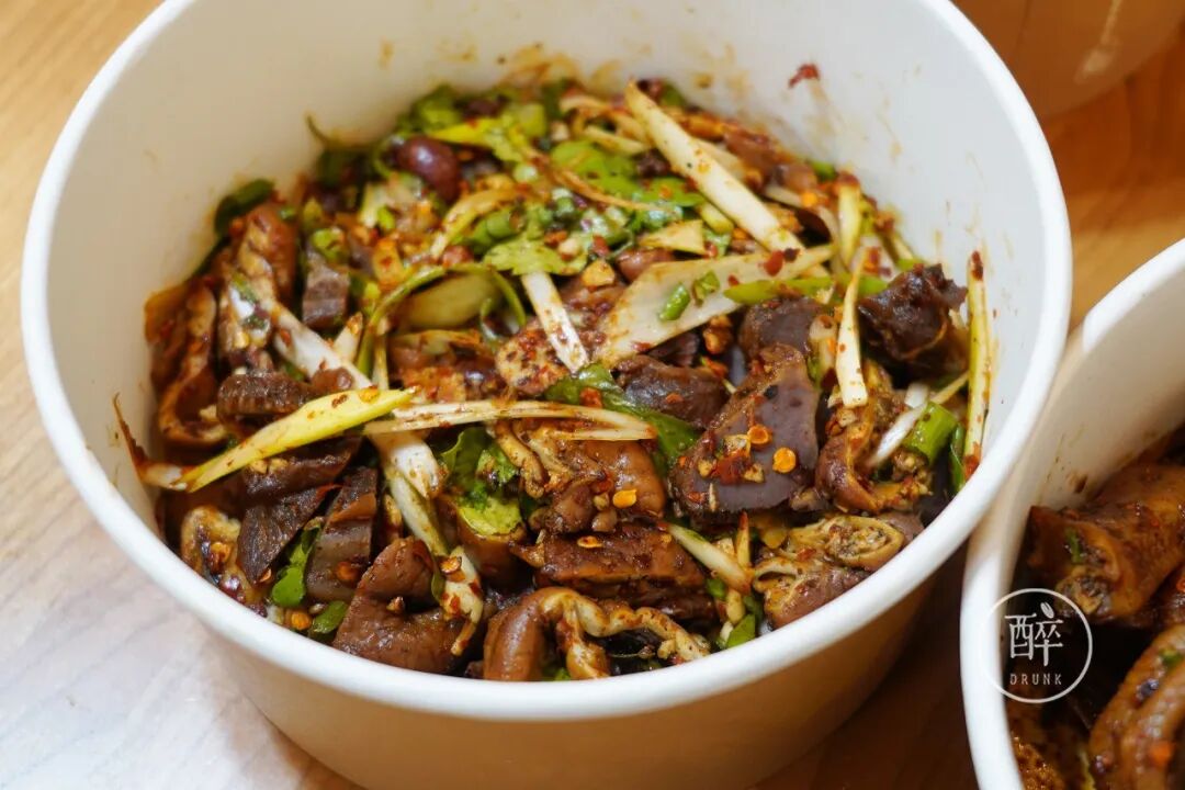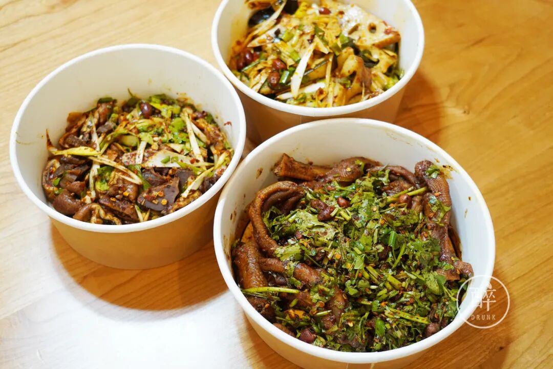 我吃的是老板推荐的对应拌法:酸辣鸡爪/鸭爪、干拌肥肠/郡肝、油拌素拼。