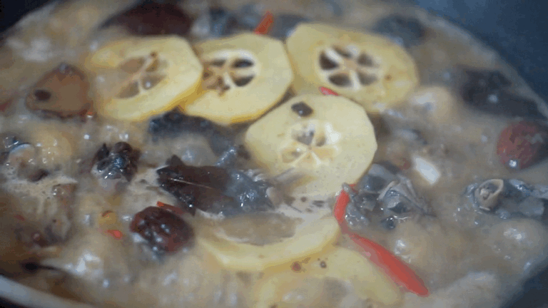 炖煮10分钟后,加半个酸木瓜进去继续煮5,6分钟。